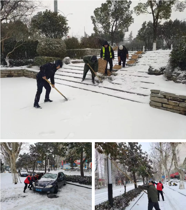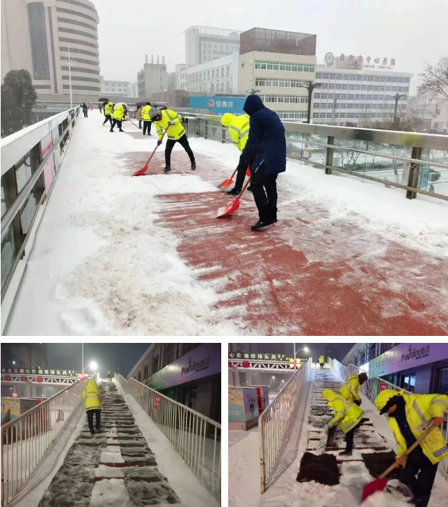 凍雨剛落,迅速安排人員融冰除雪,最大限度防止凍雨凝結(jié)成塊。2月20日晚上10點(diǎn)、12點(diǎn),21日凌晨5點(diǎn)分別出動(dòng)人員機(jī)械除冰除雪,其中市政管理處14支應(yīng)急隊(duì)伍共計(jì)272人趕至市區(qū)14座人行天橋,橋管中心6支應(yīng)急隊(duì)伍反復(fù)在大型橋梁上除冰除雪,建管中心全員出動(dòng)到襄江大道高架除冰除雪,各公園廣場、綠化養(yǎng)護(hù)單位提前做好植物防寒保暖工作,全員出動(dòng)鏟雪除冰,各安全監(jiān)管單位加強(qiáng)建筑工地施工安全巡查管控,全力筑牢住建領(lǐng)域安全防線。加強(qiáng)對各住宅小區(qū)物業(yè)指導(dǎo)和公租房小區(qū)設(shè)施設(shè)備排查,動(dòng)員352家物業(yè)服務(wù)企業(yè),發(fā)動(dòng)3000余名物業(yè)服務(wù)人員開展除冰掃雪,動(dòng)員所有在襄建筑業(yè)企業(yè)出動(dòng)933人、50臺(tái)鏟車、13臺(tái)裝載機(jī)、20臺(tái)渣土車對城區(qū)主要道路、橋梁及人行道進(jìn)行除雪作業(yè)。