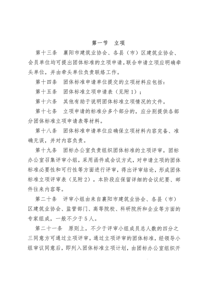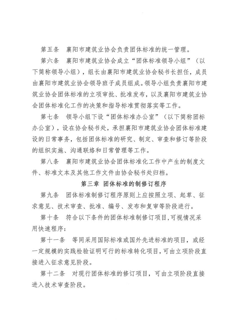 襄陽市建筑業(yè)協(xié)會關(guān)于印發(fā)《襄陽市建筑業(yè)協(xié) 會團體標準管理暫行辦法》的通知