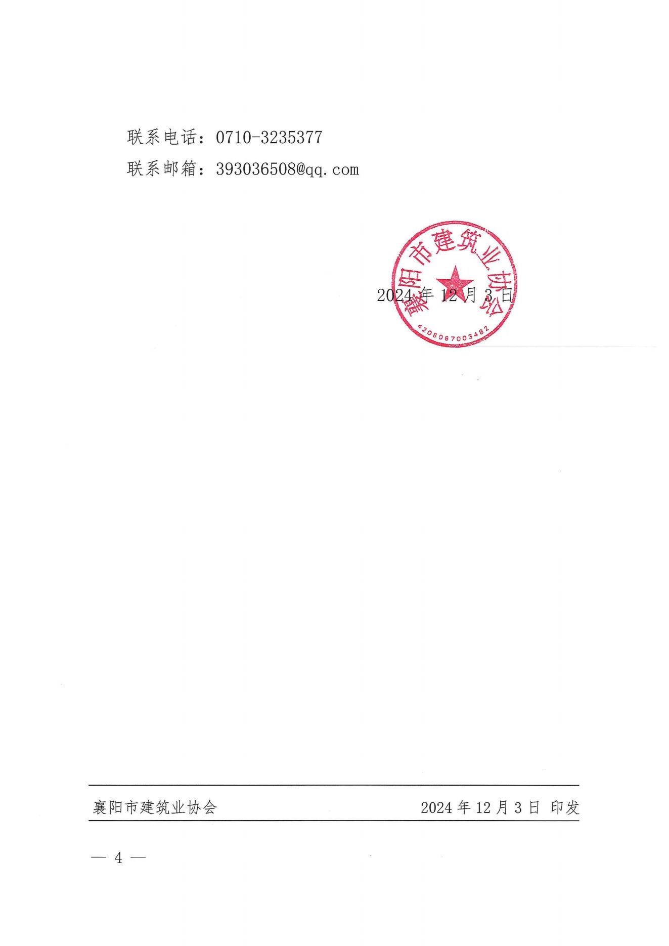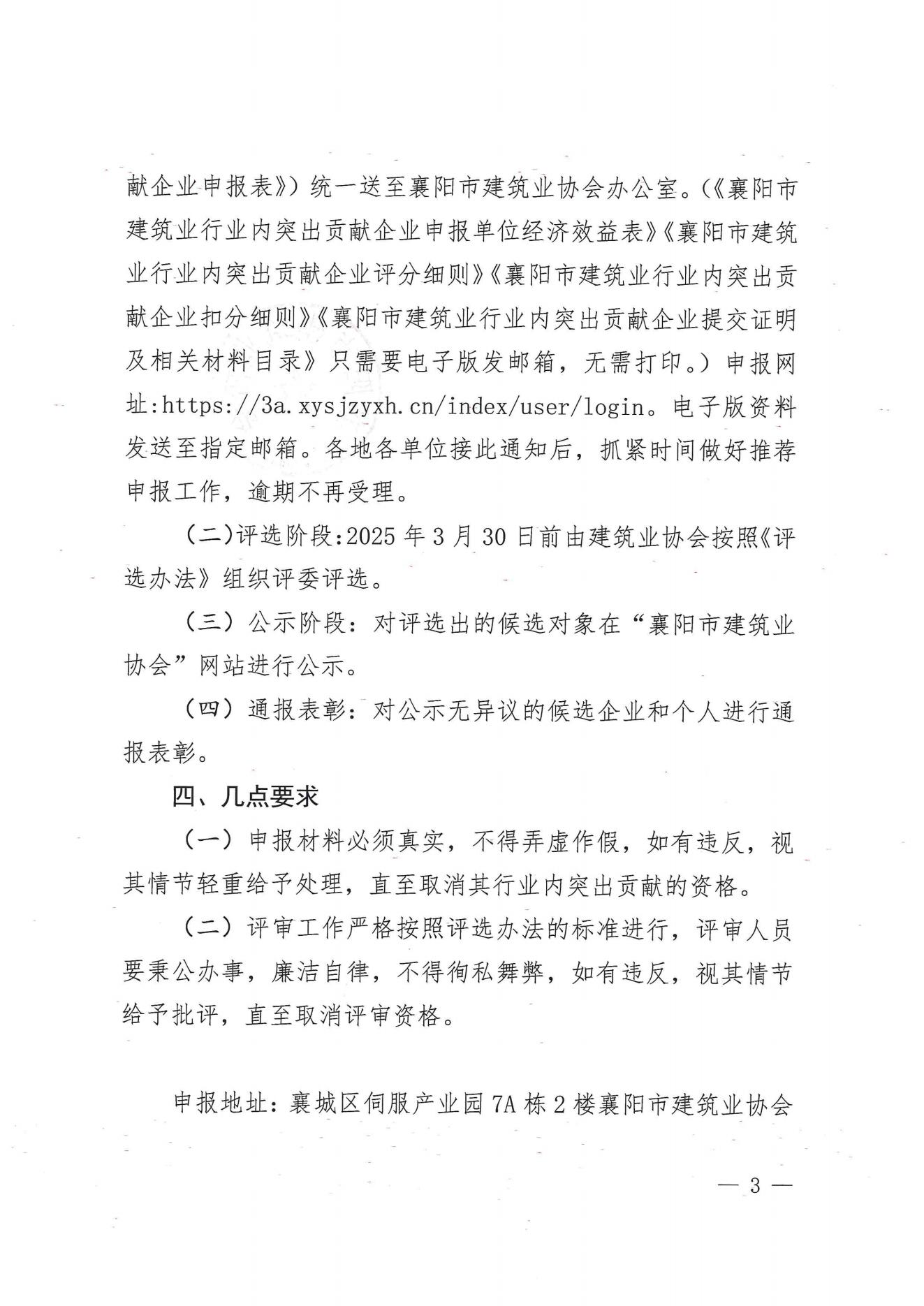 關于開展2024年度襄陽市建筑業行業內突出貢獻企業、建筑業行業內突出貢獻企業經理、建筑業行業內突出貢獻項目經理評選的通知