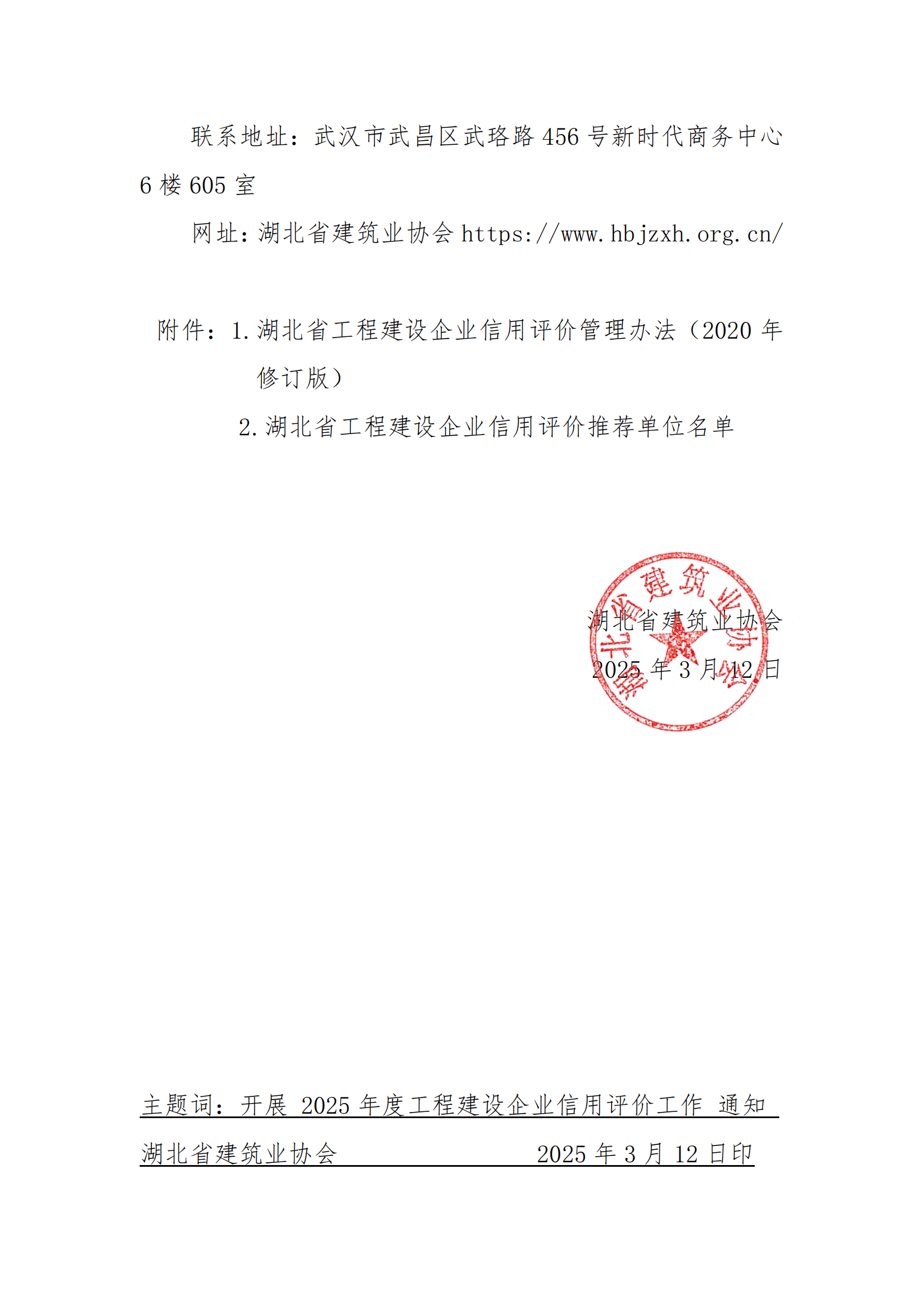 關(guān)于開展 2025 年度湖北省工程建設(shè)企業(yè)信用評價工作的通知