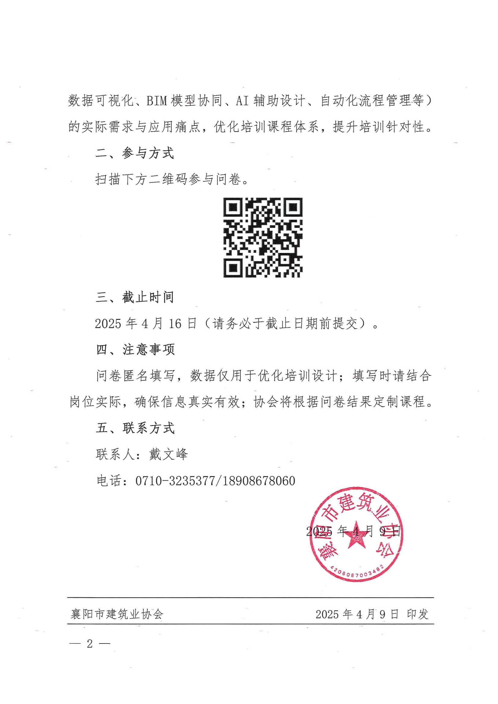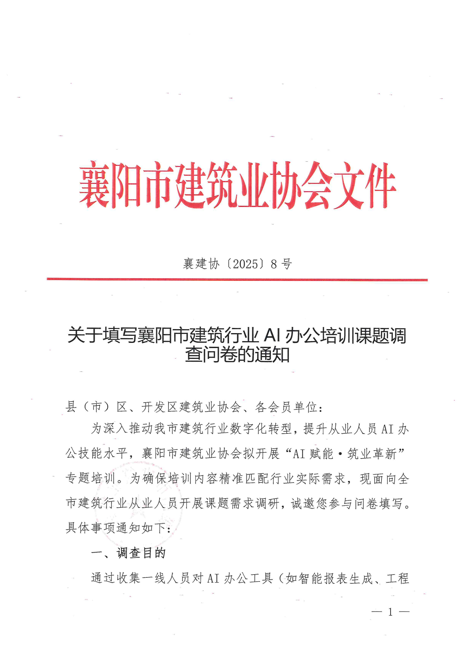 關(guān)于填寫(xiě)襄陽(yáng)市建筑行業(yè)AI辦公培訓(xùn)課題調(diào)查問(wèn)卷的通知