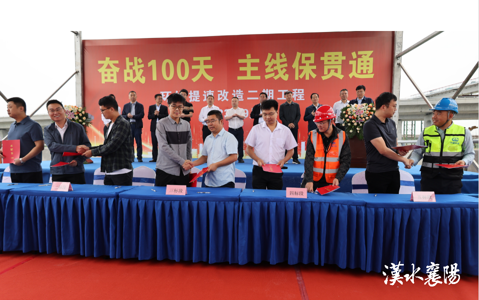 環(huán)線提速二期工程共分為五個標(biāo)段,全長約30公里,主要是采用“主線高架+地面輔道+互通立交”方式,按照城市快速路標(biāo)準(zhǔn)建設(shè)。工程自去年4月開工以來,建設(shè)單位與施工單位密切配合,克服管線轉(zhuǎn)遷、交通疏導(dǎo)等困難,加大人員、物資、設(shè)備、技術(shù)、管理等方面的投入,已經(jīng)累計(jì)完成工程總形象進(jìn)度的62.3%。誓師大會現(xiàn)場,建設(shè)單位與五家施工單位項(xiàng)目經(jīng)理分別簽訂了保貫通承諾書,搶抓當(dāng)前施工黃金期,加快項(xiàng)目建設(shè)進(jìn)度,把環(huán)線提速改造二期工程打造成襄陽都市圈高質(zhì)量發(fā)展的標(biāo)桿工程。市政府投資工程建設(shè)管理中心總工程師金煒表示,在接下來的100天里,將從工藝流程、工程質(zhì)量控制精細(xì)化等方面,把好質(zhì)量關(guān)、安全關(guān),持續(xù)提升工程管理質(zhì)效,確保年底主線貫通,沖刺2024年4月份通車目標(biāo)。