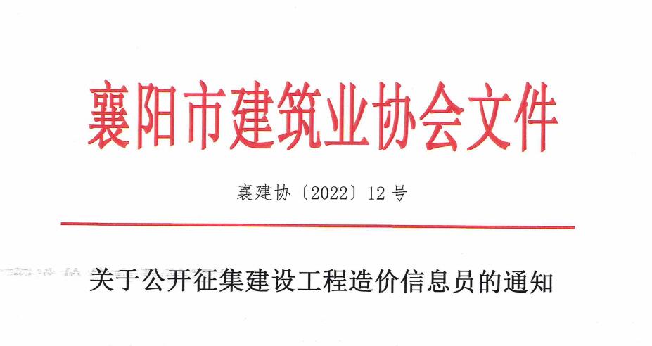 附件1:襄建協(xié)〔2022〕12號關(guān)于公開征集建設(shè)工程造價信息員的通知.pdf附件2:《襄陽市建設(shè)工程造價信息員申... 【查看全文】