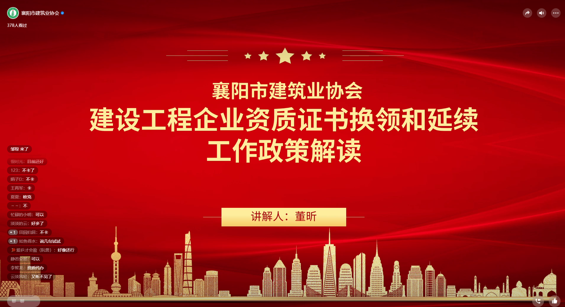 本次直播講座聚焦于企業(yè)資質(zhì)水平的提升問題,共有700余人次在線觀看。換證不僅是企業(yè)合規(guī)經(jīng)營的必要環(huán)節(jié),更是增強(qiáng)企業(yè)競爭力、拓展市場份額的關(guān)鍵舉措。希望通過本次講座,能讓各會(huì)員單位順利實(shí)現(xiàn)新舊資質(zhì)穩(wěn)步過渡,全力謀劃好企業(yè)經(jīng)營戰(zhàn)略,實(shí)現(xiàn)持續(xù)健康發(fā)展。